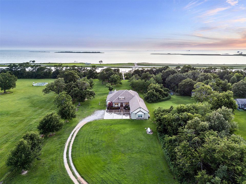 Welcome to a fully furnished striking estate in Anahuac. A gated 5 bedroom, 5 bathroom custom property situated on over 2.5 acres of meticulously maintained land. This architectural standout blends modern elegance with timeless craftsmanship, featuring soaring ceilings, a dramatic open floor plan and floor-to-ceiling windows that fill the space with natural light. At the heart of the home, a designer kitchen with an oversized island, soft-close cabinetry, and top-tier appliances flows seamlessly into the expansive living and dining areas - perfect for entertaining. The spacious first-floor primary suite is a true retreat, complete with a spa-like bathroom and two walk-in closets. Additional highlights include a dedicated home office, oversized bedrooms and 4-car garage. Outside, enjoy a private pool and hot tub, serene bay views, and unforgettable sunsets - all from your covered patio and gated grounds. Easy drive to/from Houston.