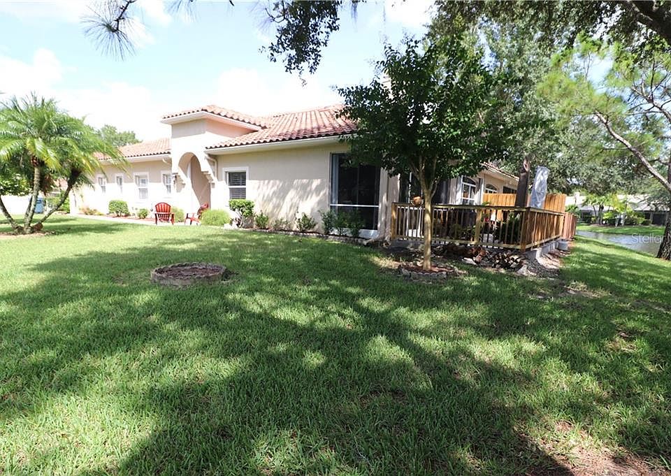 SPECTACULAR VILLA! NOT TO BE MISSED! No need to settle for less when you can have it all! Premium over-sized lot. Over 100 feet of lagoon frontage, all viewed from the wide Trex deck extending the entire length of this beautiful home. Plus, a covered screened lanai. Huge side yard so there is plenty of privacy with a park-like ambiance. The popular Amherst model features two bedrooms, an atrium PLUS a den which makes a perfect home office. Current owners have spent over $44,000 in meaningful upgrades in the past two years. New beautiful shaker kitchen with soft-close drawers, new backsplash, custom wood treatment above upper cabinets, under cabinet lighting, above cabinet lighting, stainless steel appliances, including GE French door refrigerator just purchased in May. Granite countertops. Kitchen island doubles as a workspace or a snack bar with comfortable seating for three. Custom plantation shutters on all exterior-facing windows. Elegant soft vertical shades on living room sliding doors. Beautiful knock-down textured ceilings. New crown molding throughout. New baseboards. New interior doors and hardware. Updated fireplace surround. Bryant HVAC is equipped with a UV air sterilizer using a 130 watt, 254 nanometer UVC lamp. Home has $11,000 in hurricane protection for every window, including accordion style protection for the front entry and across the lanai. Custom, solid shelving in owner suite closets, kitchen pantry and hall closets, with adjustable solid shelves. Custom double-door, in-wall storage in owner bath. Roll-out drawers in baths. Built-in storage galore in garage. Updated owner suite bath (with double basins). Updated hall bath. Bead-board detailing and cabinet storage in adorable laundry room. Custom super screen atrium ceiling. Lots of natural light. Classic, quality materials and neutral wall and floor colors throughout. Salem Square Village provides the perfect maintenance-free lifestyle - all within scenic Ridgemoor. Lawn maintenance, pool maintenance, exterior painting and roof repair/replacement are all done for you! The Ridgemoor master community has everything one could want scenic walking and biking trails, basketball courts, play area, tennis courts and close proximity to gulf beaches and golf courses. And shopping is a pleasure, right around the corner. The current owners have LOVED living here and they know you will love it here too!
