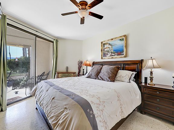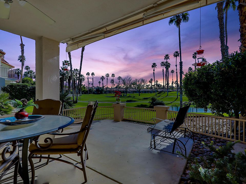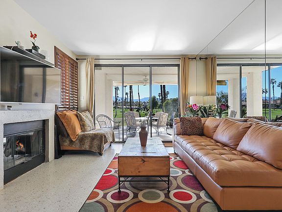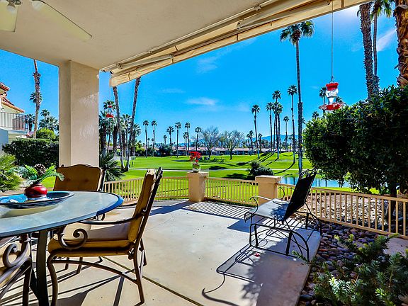 Beautiful views, enclosed covered south facing patio w/ retractable awning, elevated lot in front of lake, single level w/ attached 2 car garage w/ electric car charging port. Master has dual vanities and walk in closet beautiful modern shower, sliding door to patio and sunset views. Features a nice separation from the second bedroom so privacy is not an issue. Comfy living room with fireplace, dining area and views. The bright and airy kitchen and breakfast nook is just what the chef ordered. Plantation shutters. Tastefully done and ready to move in to. Newer a/c and water heater. Palm Valley Country club is dubbed the ''fun'' resort because there is so much to do and a very active community! Popular w/ tennis, golf, and pickle ball enthusiasts. Tons of heated pools and spas. Short term rentals OK. Close to tennis gardens, shops on El Paseo, shopping, dining and much more! Very close to new hockey rink. Great investment or forever home. Condo is realtor owned. 38487 Nasturtium Way, Palm Desert, CA 92211. Palm Valley Country Club a golf and tennis resort. Unit is occupied viewing available 1/26 and 1/29