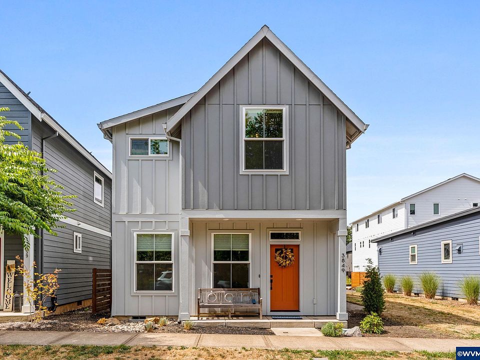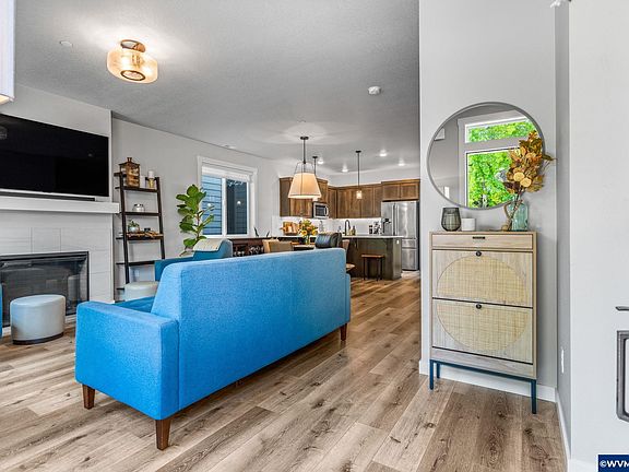 Like new home in Pringle Creek Community. Open floor plan on main level w/ a FP in the living room, dining area, great kitchen with quartz counters, SS appliances. Large vaulted primary with a spacious bathroom featuring a soaking tub, 2 sinks, shower and enclosed toilet area. Walk in closet with ample space. Sitting/office space and laundry on the 2nd level. Oversized garage with EV charger. Covered patio off the dining room. Comm. meeting room and large garden area. Owner is licensed RA