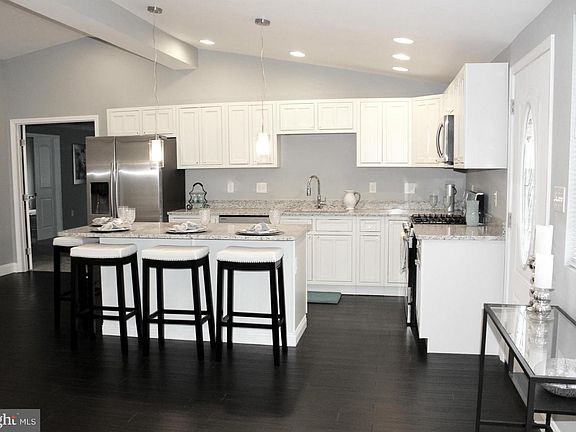 Stunning Renovation. Huge 4BR/2BA. Bright & Open Floorplan w/all New Granite Kit w/Island, SS Appl, Gas Cooking. Cathedral Ceilings in Kit Opens to Family Rm. MBR Suite w/Tray Ceiling, Crown Molding, Chandeliers, Sitting Rm, Walk-in Closet + Luxury Bath w/Soaking Tub + Huge Custom Shower, New HW Floors & Carpet, New Vinyl Siding, 2-Zoned Heating. All New Interior Doors, Fabulous for Entertaining.