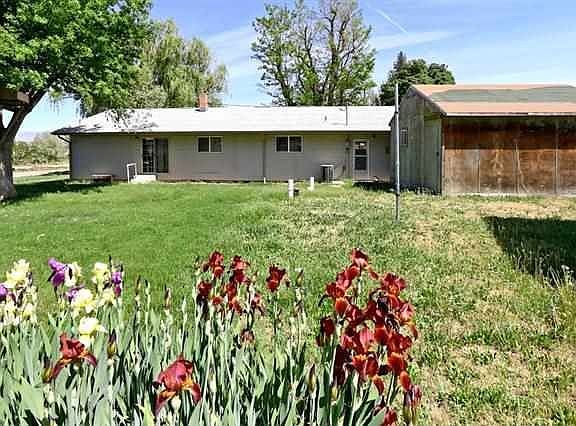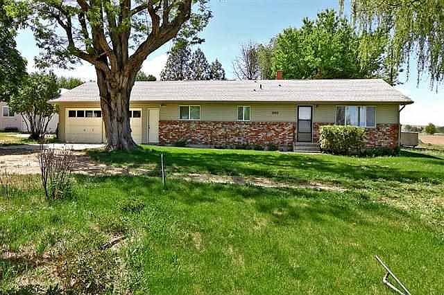 First time on the market! This quaint home sits on 9 acres in the quiet country setting of Emmett. The home boasts 2 bedrooms with a possible 3rd bedroom, 2 baths, great room, dining room and great kitchen. Beautiful mature shade trees frame a view of the Butte. Room for a garden and any additions to the established small orchard. 1 shop and 2 storage sheds add plenty room to storage anything one needs. Farm ground is currently leased for this season.