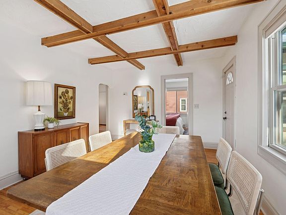 Welcome home to this unique 2 bedroom, + office, 2 bath home in wonderful Robbinsdale. This charming home features beamed ceilings in both the dining and great rooms, wood floors throughout the entire first floor, a galley kitchen w/pantry, beautiful wood-burning brick fireplace in the family room and a brand-new main floor bath. Other features of this darling home are attached screened in porch, a finished basement with a second bathroom and a 3-car garage! The 3rd garage stall has been used as a flex space as it opens into the fully fenced yard and provides optional space when grilling or entertaining in the back yard. Rain will no spoil an outdoor part in this yard! The yard also has a Koi Pond with a fountain that works in warm weather as well as an exquisite rose bush and peony bushes. Don't let this one get away, this is a unique property and a great value.
