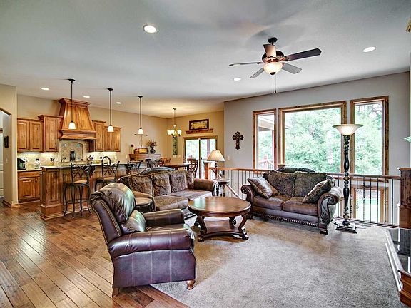 Well maintained home on Watercress Cul-de-Sac! This 5 BR 3 BA 3 Car split bedroom plan with attention to detail will catch your attention. As you enter, you will notice the open main floor living space, beautiful woodwork and built-ins, large windows overlooking the wooded backyard and the gas fireplace in the living room. So many upgrades in the kitchen including granite countertops, walk-in pantry, eating bar, tile backsplash and oil rubbed bronze faucets. The dining space has gorgeous views of the backyard with sliding doors to the covered deck with roll down sunshade. Hand scraped wood floors finish the foyer, dining area and kitchen. The master suite is truly private with an elegant coffered ceiling in the bedroom and huge walk-in closet. You can escape to the luxury master bath complete with a garden tub, separate shower, 2 sinks, granite countertops and ceramic tile flooring. Main floor laundry, 2 more bedrooms and a hall bath round out the main level. The mid-level walkout / view out basement offers a large family room with gas fireplace, wet bar and separate game area including built-ins & granite countertops. A third bath boasting an upgraded vanity, vessel sink, glass shower, unique backsplash and ceramic tile flooring plus 2 more bedrooms finish out the lower level. Your kids will love the play set in the wooded area in the backyard plus the basketball goal on a nice concrete pad. An underground pet fence (Invisible Fence) surrounds the back and side yards, and also works with electronic pet door from the garage. Newer Dishwasher, water softener, kitchen faucet. Sellers are licensed real estate agents in the state of Kansas. This home is a must see for your list - call to schedule your private showing today!