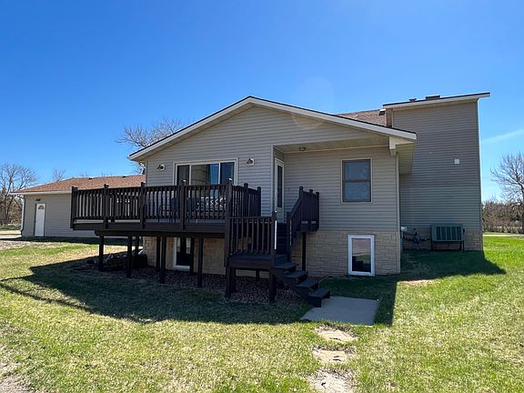 This 8.9 acre +/- fantastic rural property includes a beautiful home w/ large wrap around deck. Main level has living room, kitchen, dining room, bedroom, bathroom, laundry room, office (could be a bedroom) with separate entrance, built in desk & fireplace. Level 2 has a bonus room with access to a deck, 2 bedrooms and full bathroom. Original home was built in 1900. In 2003 home was moved onto a new foundation and a large addition & 3 stall garage were added. Adjacent to Foote Creek providing wildlife viewing. Property has a 60' x 84' x 16h insulated machine shed/shop which has a natural gas heater, used oil furnace, 220v electric service, 2 - doors (13' h x 14' w), 1 door (12' x 12') and all doors have openers Legal Description: Lot 1 in Ludwig Second Subdivision