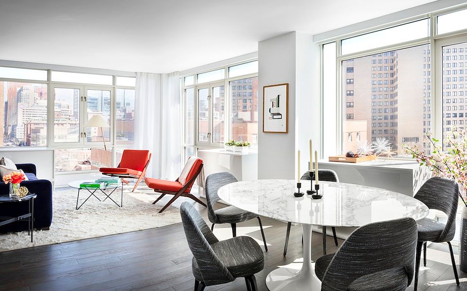 This generous and efficiently designed two bedroom, two bathroom home features northern city views and split bedrooms with outstanding proportions. World-renowned designer Francis DHaene of DApostrophe Design has created light-filled interiors, infused with exquisite fixtures and refined detailing throughout. The entry leads to the kitchen which is appointed with glossy white Italian lacquer cabinetry, honed marble countertops and backsplashes, an integrated Sub-Zero refrigerator and freezer, a Bosch gas cooktop, ventilation hood, as well as a wall oven, microwave, and Bosch dishwasher. On one side of the apartment, the Master bedroom features an en suite bathroom with honed Bardiglio marble on the floor and vanity counter with two sinks, polished Olympic marble walls, polished nickel fixtures by Waterworks, and a Toto toilet. An expansive walk-in closet is a divine attribute of this master suite. At the opposite end of this apartment is a second bedroom with a wall of closets and a full bathroom. Your home at Luminaire also boasts the ultimate luxury: an in-residence washer and vented dryer. Luminaire is a rare opportunity to own a home of equal parts substance and style just moments from Gramercy Park, Madison Square Park and the East Village. In this artfully designed condominium conversion by Francis DHaene, space, light, and location combine to present a brighter kind of Manhattan living. With unique light and views, modern interiors, and a downtown location, Luminaire is at the center of everything you care about. Luminaire offers a full suite of amenities, including a 24-hour doorman, live-in super, private landscaped terrace, resident lounge, fitness center programmed by Jay Wright of the Wright Fit, and a large, landscaped roof terrace with panoramic views. 2017 Occupancy. The artist and computer renderings and interior decorations, finishes, fixtures, appliances and furnishings are provided for illustrative purposes only. Sponsor makes no representation or warranties except as may be set forth in the Offering Plan. All square footages and dimensions are approximate and subject to normal construction variances and tolerances. Computer and artist renderings reflect the planned scale and spirit of the Building. Sponsor makes no representation that future construction in the neighborhood surrounding the Condominium will not result in the obstruction of the views from any windows and/or Terraces. Sponsor reserves the right to make substitutions of material, equipment, fixtures, finishes and appliances in accordance with the terms of the Offering Plan. The complete offering terms are in an offering plan available from the Sponsor. File # CD 140383. Sponsor Name: MF 385 First Ave LLC, 594 Broadway, Suite 1010, New York, NY 10012. Equal Housing Opportunity.