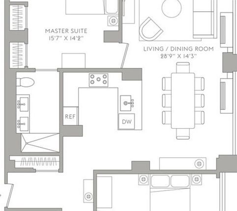Open House Tonight 5-6:30. Available July 15. This apt is a split 2-bedroom & 2-bathroom home with in-unit Washer/Dryer. Floor-to-ceiling windows frame the expansive northeastern views with exposure towards the East River. The corner living room is perfect for entertaining, leads to the Master bedroom and en suite bathroom, beautifully finished with grey fume marble on the walls, marble on the floors and vanity counter with double sinks. The second bedroom is located at the opposite end of the apartment and has an adjoining bathroom. Other details include zone-controlled A/C in each room, wide oak flooring. The CODA is just moments from Gramercy Park, Madison Square Park and the East Village. With unique light and views, modern interiors, and a downtown location, including a 24-hour doorman, live-in super, landscaped terrace with BBQ, resident lounge, and fitness center.