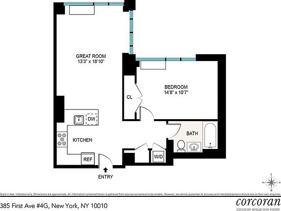 This 729 square foot apartment home has 1 bedrooms and 1.0 bathrooms. This home is located at 385 1st Ave APT 4G, New York, NY 10010.