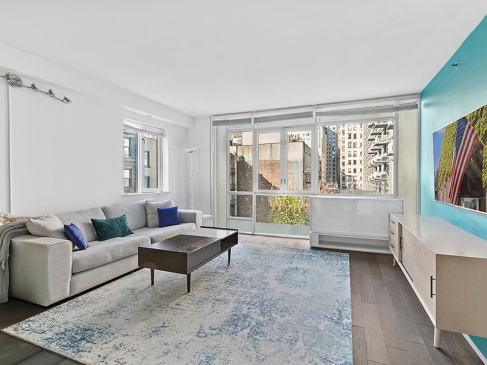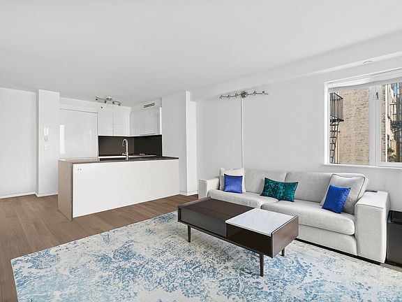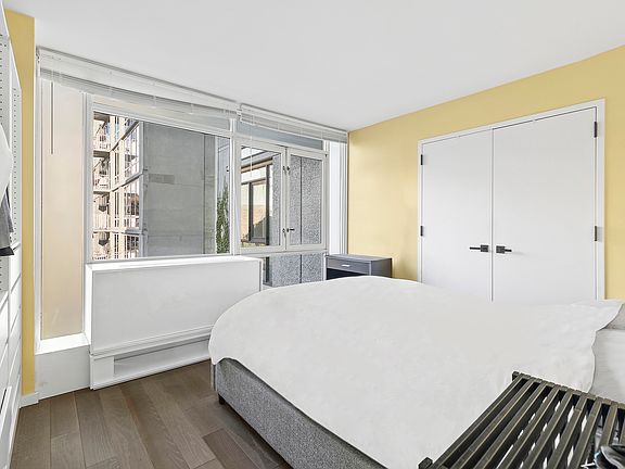 4H is a spacious corner 1BR / 1BA residence spanning 750 square feet, situated on the 4th floor, and overlooking the interior courtyard for a peaceful, quiet ambiance without any street noise. Located in East Gramercy (1st Ave, between 22nd & 23rd), this unit features floor-to-ceiling windows that provide abundant sunlight from western and southern exposures. As you enter, you are greeted by a foyer with a large coat closet, leading into an open-plan kitchen. The U-shaped chef's kitchen is well-appointed with a Sub-Zero refrigerator and double freezers, a Bosch stove with ventilation hood, and a Bosch dishwasher, making it ideal for culinary enthusiasts. The unit also includes an in-unit GE washer and dryer for added convenience. The bathroom is equipped with a Toto bidet seat and a sliding shower door, enhancing the overall functionality and comfort. Storage is ample, with two custom closets (one in the bedroom and one coat closet), along with two added freestanding closets and a storage cabinet, ensuring plenty of space for belongings. Amenities and services include: 24-hour attended lobby, live-in Resident Manager, private fitness room programmed by The Wright Fit, residents' lounge, private storage, landscaped resident's terrace with grill, and a fully furnished and landscaped roof deck. In a dynamic location just moments from the best restaurants in Gramercy and the East Village, the vibrancy of Madison Square Park, the jogging path on the East River Greenway, and easy accessibility to Midtown, CODA offers the best of Downtown living. The location is exceptionally convenient for medical professionals or students, being near several hospitals (NYU, Bellevue, VA) and NYU Dental School. This unit is available in January 2025, with flexibility on the start date, making it an attractive option for those seeking a premium living experience in a serene, well-equipped environment.