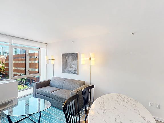 Purchase Fully-Furnished Turn-Key unit. Floor-to-ceiling windows showcase electric city views with natural light. This spacious 1-bedroom 1-bath home has refined finishes and detailing. Entry foyer features large coat closet and flows into the open U-shaped kitchen featuring glossy white Italian lacquer cabinetry. Honed marble counters and backsplash accent the integrated Sub-Zero refrigerator and freezer, a Bosch gas cooktop with a ventilation hood, and a wall oven and Bosch dishwasher. Entertain with ease in the adjacent living room and dining space offering ever-changing views. The bathroom is tastefully appointed with honed Grey Fume marble floors, a custom Ash Veneer vanity with a blackened steel frame, polished nickel fixtures by Waterworks, and a Toto toilet. This home is complete with an in-unit washer and vented dryer. CODA is a rare opportunity to own a home of equal parts substance and style just moments from Gramercy Park, Madison Square Park, and the East Village. In this artfully designed condominium conversion by Francis D'Haene, space, light, and location combine to present a brighter kind of Manhattan living. With unique light and views, modern interiors, and a downtown location, CODA is at the center of everything you care about and offers a full suite of amenities, including a 24-hour doorman, live-in super, private landscaped terrace with barbecue grilling station, resident lounge, fitness center programmed by Jay Wright of The Wright Fit, large private storage cages, bicycle storage, and a large, landscaped roof terrace with panoramic 360-degree views of Manhattan, Brooklyn, Long Island City & beyond.
