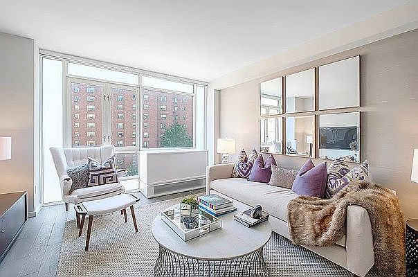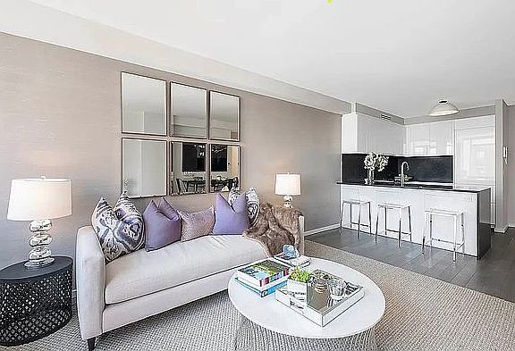 All showings are by appointment only. Available starting Mid May or after. Bright and airy 720sq ft one bedroom with an open kitchen and water views! Great morning light facing East with oversized windows. Brand new Washer/ Dryer within the unit that vents to the outside! The large bedroom can accommodate a king sized bed and has gracious closet space. The bathroom is fitted with Waterworks fixtures, Toto water closet, Vanity finished in ash wood finish with blackened steel frame, Silver grey porcelain tile walls and Honed Grey Fume marble flooring. The interiors by renowned D'Apostrophe Design include European Oak flooring, white lacquer kitchen cabinetry, and stone counters. Amenities and services include: 24-hour doorman/concierge, live-in Resident Manager, private fitness room, residents' lounge, landscaped resident's terrace with grill, and a fully furnished and landscaped roof deck. No walls, no shares. Video available on request. Broker fee applies.