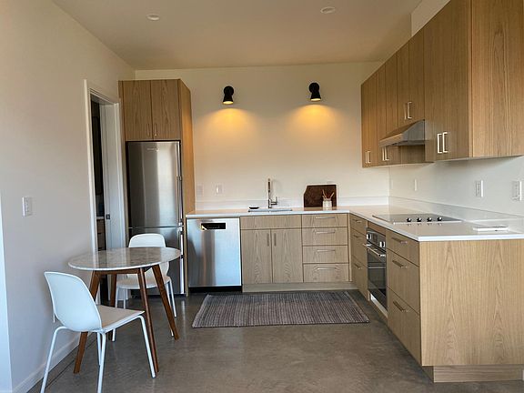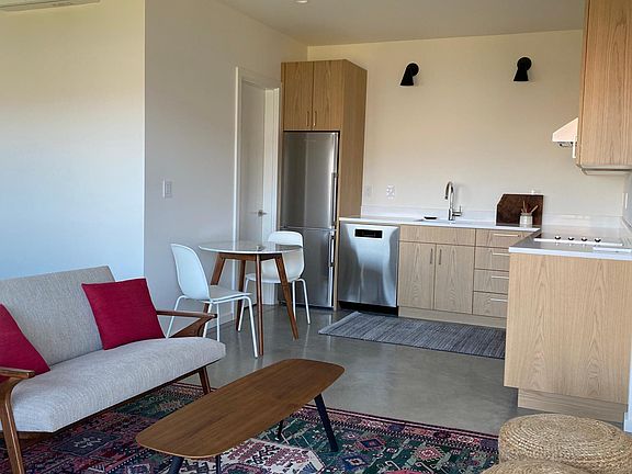 Modern Studio unfurnished apartment within a private home. Located in Mosier with views of Coyote Ridge and the Columbia River Gorge. The walk to town is an easy 10 minutes. There is a gravel parking space for one car only and a private stairway on the side of the house that goes down to the Studio entrance. Open design, very light with lots of windows, cozy, 425 square feet. There is a walk-in closet for light storage and a small patio with a sunset view. Modern kitchen with DW and stainless steel appliances. Owner pays for water, electric, internet. No pets. No smoking allowed. One off-street car parking allowed.