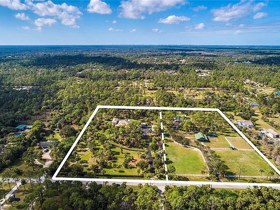 Exquisite 10-acre equestrian property with two separate entrances off 7th Street SW. The home is situated on 5 acres of immaculately maintained mature landscaping. Well designed open floor plan with volume ceilings, large gourmet kitchen with granite countertops, gas fireplace in living room, 20-inch tile floors, wood floors in the game room, and impact windows throughout. The spacious lanai is protected by electric hurricane shutters. The heated pool and spa have a backdrop of tropical landscaping. A second master suite upstairs has balconies overlooking the park-like grounds. An additional office/sitting room below the master creates a cozy, private retreat. This is a perfect home for entertaining friends and family. The equestrian facilities are located on the second 5-acre parcel and can be accessed from 7th Street SW via a well-landscaped driveway lined with oak trees. White vinyl fencing surrounds the front paddocks. The center-aisle barn has a tack room, 5 stalls with attached turnouts, and 2 wash racks. Toward the rear of the property is a 48 x 36 x 18 high workshop. Enjoy living on this 10-acre country estate.