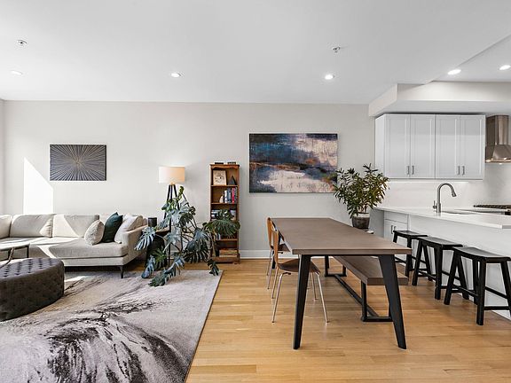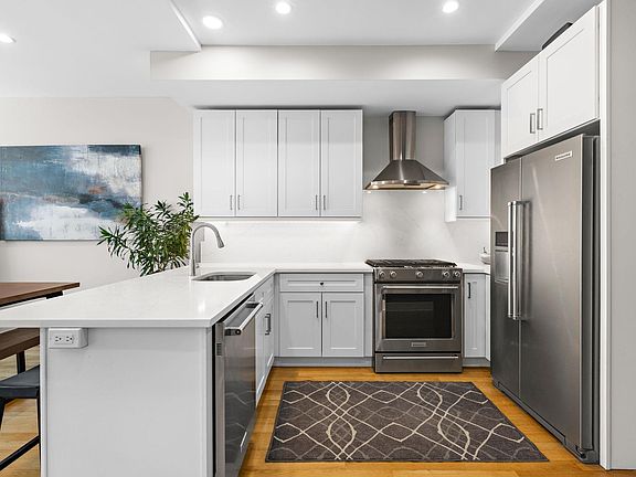 Step inside to a bright and airy open-concept floor plan, where hardwood floors and floor-to-ceiling windows create a warm, inviting ambiance. The gourmet kitchen is a chef’s dream, featuring top-of-the-line stainless steel appliances, a gas range, sleek cabinetry, and ample counter space—perfect for both everyday living and entertaining.