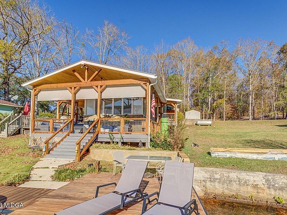 17 STEPS TO BEAUTIFUL JACKSON LAKE!! Adorable and Completely Renovated Inside and Out!! Alcovy Area. New Dock, Wiring, Plumbing, Flooring, Paint, Appliances and More!! Upscale Features. Huge Covered Deck Overlooking the Lake Complete with a Mini Bar. Covered Side Porch with a Unique Outside Shower. Smaller Covered Deck Perfect for Coffee, Meals, or Cocktails. Kitchen and Bath have Granite Countertops. New Hardie Plank Siding. Recently Installed Fiber Optic Internet. 100' feet of New Field Line Installed for the Septic System. Septic Tank Has Been Recently Pumped. At Full Pool, Water Depth is 5.5 feet. Perfect as Full time Residence or a Weekend Retreat. All Paved Roads. Located between Atlanta and Macon. Located Centrally to Shopping, Restaurants, Marinas, Churches, and Employment Opportunities.