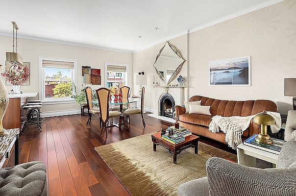 FIRST TIME ON THE MARKET. Beautiful condo level finished duplex penthouse in a very well maintained boutique elevator building. 385 Atlantic is on a stunning block in prime Boerum Hill with many restaurants and shops filled with Brooklyn charm. Enter into lower level of the penthouse duplex which has a beautiful kitchen with island looking over the living and dining space with gas fireplace. Down the hall is a high level finished powder room, two large bedrooms, and an additional full bathroom. There is an abundance of closet space throughout the floor. Up the interior staircase lands on the primary suite floor. This floor has a large bedroom, full size laundry room, wet bar with fridge, full bathroom, along with massive bonus TV or lounging area. Off this floor is a gracious covered 230 square foot private balcony looking over Atlantic Avenue. The unit has central air, high end finishes and fixtures throughout, gas fireplace, full laundry room, private balcony, elevator, everything! Incredible apartment - must see! Available immediately