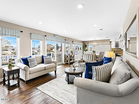 YOUR NEXT STORY BEGINS at this 4/5 BR 2.5 Bath Custom & Fully-Updated Waterfront Home in Bayville! Deep, wide lagoon with easy access to the bay, this home is situated PERFECTLY in Bayville. With nothing to do but move in, this home really has it ALL! Upgraded kitchen w/ granite counters, center island, wine fridge open to the dining and living rooms with tons of natural light and waterviews. LVP flooring throughout, master suite with upgraded bath, three additional bedrooms and bonus room all upstairs, this home could fit the WHOLE family! Vinyl bulkhead, 50x5' dock w/ 10' pilings, electric jet ski, awning, NEW trex decks in front & rear, & NEW landscaping all highlight the exterior of the home. 2-car garage, neutrally painted throughout, powder room, laundry & much more! Schedule today!