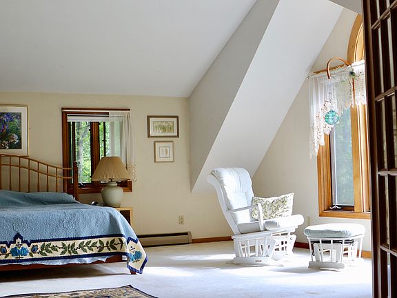 Buyer Brokers welcome. Open and sunny, lots of southern windows with large overhang to keep out summer sun. Rooms are large and well thought out. Laundry on first floor as well as one bedroom. Two bedrooms upstairs. Central Vac with new tools. Whole house X fan. Roof and Chimney 2 years ago. Cedar clapboards treatment completed this year. Nest thermostat and New high efficiency propane heating system four years ago. Radiant heat and baseboards. Appliances included. Four car garage/shop insulated and part heated. Indirect lighting. Many builtins and finish details. Fresh paint. Very well insulated and tight home. Wood stove as well as a propane stove in the dining room. Walkin closets. Large overhangs provide shade in summer and solar gain in winter. Energy Star roof. cell 802-369-5715