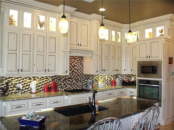 LAKEFRONT!!!Beautiful custom built home with large covered back porch with fireplace and tv and a view over looking the lake. Mother-in -law plan with high ceilings, open living area and beautiful accented woodwork throughout makes this house unique! Kitchen has tall ceiling with cabinets that go all the way up,island with granite and sink.This house has so many extras including large laundry room (with granite),large gas fireplace in living room, and big crown molding. The master bed has deep recessed ceiling,french doors out to the covered patio,huge walk in closet with plenty of shelves.Master bath has his and her sinks with more granite,garden tub and large walk in shower.Must see this house to appreciate the craftsmanship, all the extras and the view from the back porch over looking the lake with no houses behind it.THIS HOUSE IS A MUST SEE!!DON'T MISS THIS ONE!!!
