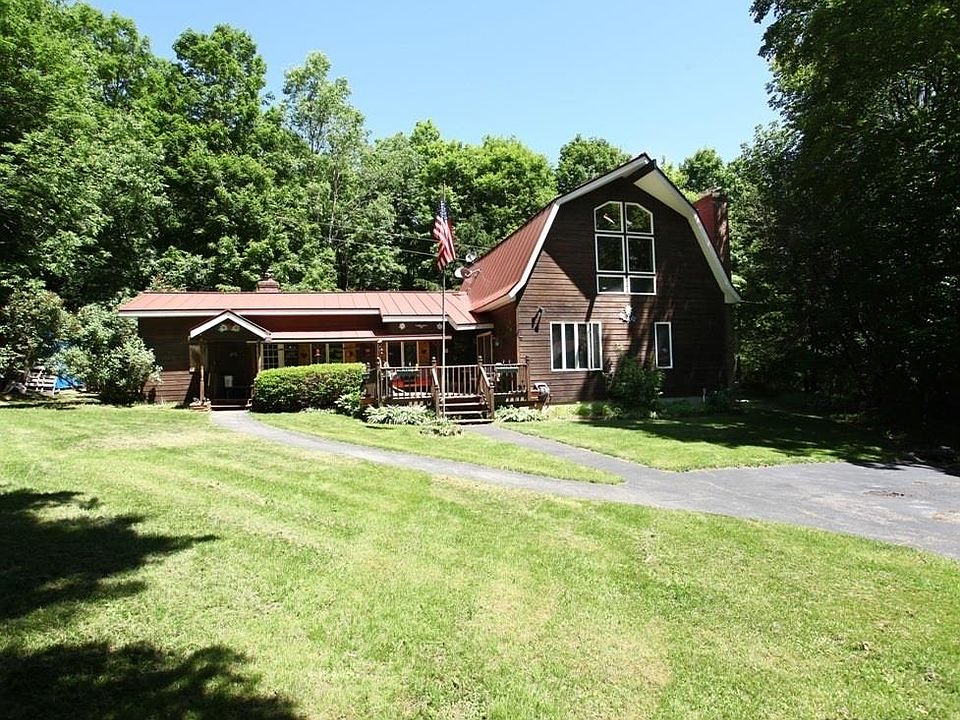 This home boasts Country Charm! Uniquely crafted from Vintage wood, this Timber framed 4 bedroom 1 bath Chalet is nestled in the woods. Family & Living rooms both offer wood stoves, Cathedral ceilings, loft sitting area and french doors open to one of several decks. Detached two-car garage, central air and a whole house generator. Property borders 2000 acres of State Land. Conveniently located 1 hour from the Capital District and 2.5 hours from NYC. Come make this your own quiet retreat.