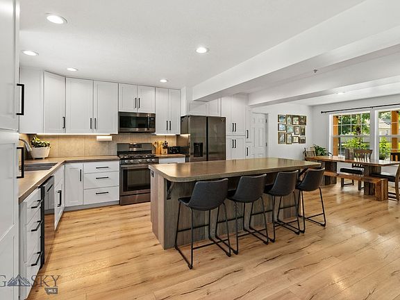 Amazing spacious home in very desirable Westfield neighborhood, Bozeman south side location, minutes from downtown. Fully updated with new windows, furnace and central air conditioning, interiors and appliances all within the last 3 years. This home has the perfect layout for guests with a private jr master with en suite bathroom in the basement. Enjoy relaxing on the spacious patio with 2021 hot tub and custom built outdoor sectional. Heated and insulated garage with custom built shelving. This unique lot borders subdivision park area with a seasonal creek. The sizeable backyard has a fenced garden, raised gardening beds and four mature and high producing apple trees! Additional R/V parking pad. Short walk/bike to Morning Star Elementary and Sacajawea Middle School, and in close proximity to MSU and Bozeman Deaconess Hospital. And…the Sourdough trail system is a short walk from your door!