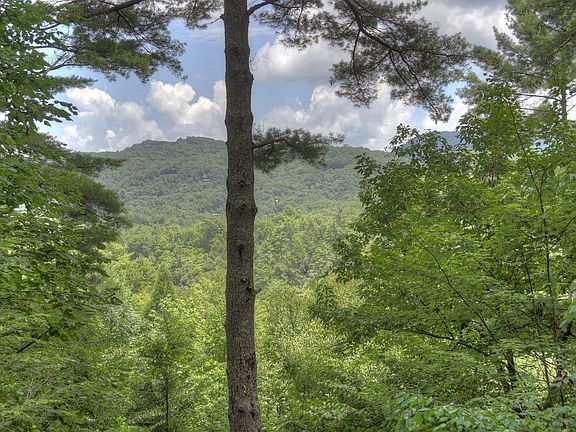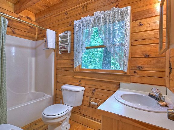 Quaint and Quiet, this Rustic Charmer is nestled on gentle wooded tract that meanders to creekside...plenty of room to roam! This stunner is "cute as can be" with 2 bedrooms/2baths + large loft area, covered upper & lower porches + sprawling deck overlooks lush mountain landscape with wild fern and towering hardwoods, great fire pit area, wood floors & interior along with corner stone fireplace in open living/kitchen/dining areas, rustic pine kitchen with plentiful cabinets, soaring ceilings promote open feel, bedrooms open to porches, newly finished terrace level features guests quarters, den/rec room, wet bar, savvy storage & access to lower porch, well thought rustic furniture and accessories complete the package, private yet conveniently located in scenic community with private lakes for your enjoyment..perfect for that much needed getaway cabin or great for rental and ready to go! This is a must see!!