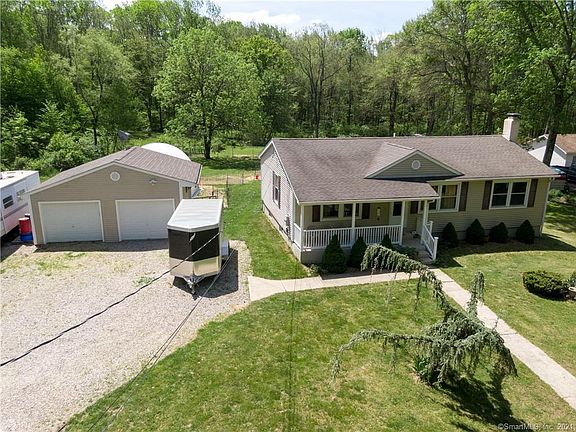 Ideal ranch in a country, rural setting. Easy access to the RI border and nestled in the quiet corner of CT. Updated kitchen and hardwood floors throughout the home. Enjoy the large deck off the kitchen with your morning coffee overlooking the peaceful yard. A detached two car garage for your outdoor toys. Current owners have a small donkey and sheep on the property. 2 acres to enjoy Easy one level living with a full basement for storage. Just move right in. Seller to find suitable housing.