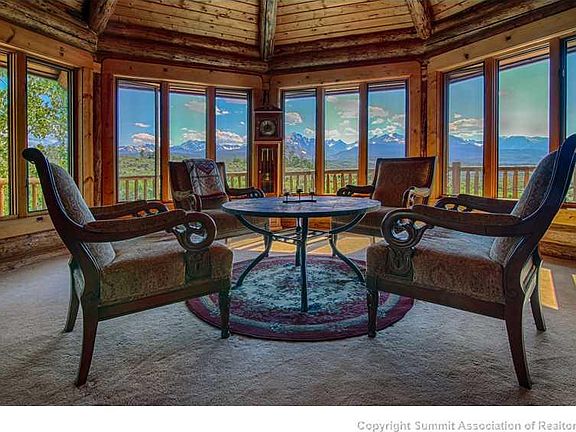Best view in the County. Stunning full Montana log home with huge entertaining spaces and plenty of room for family and guests. Main floor master+ 4 more bedrooms in the main house. High end bathrooms. Separate bunkhouse above garage w/an additional bedroom, full bath + living area. Enjoy outdoor space on decks, patios, and oversized fire pit. FULL 40 acres incl. Allowance for log staining.