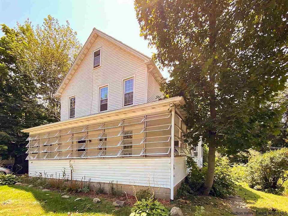 You won't believe the space this 1890's two family offers! Each apartment has updated kitchens, two bedrooms each, high ceilings, decks and lots of windows and light. The second floor apartment has a giant walkup finished attic which would make an awesome office, art studio, family/media room, etc. Much of the original character remains in this property. Lovely rear yard, one car garage, off street and on street parking, great investment. Live in one, rent the other or convert to a giant single use homestead. Partially finished basement adds even more space. Projected rent for second floor apartment $2000 +/-, first floor $1800 +/-. . Each floor has a separate electric meter. Landlords pay heat, water/sewer, taxes, insurance, maintenance, etc. Great location close to the Hudson River, Rondout waterfront, boating, Kingston Point Beach, Rotary Park, fine restaurants, galleries, music venues, trails and more. Tennis and basketball to enjoy at Hasbrouck Park which borders the backyard.