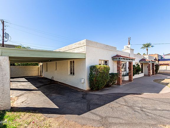 Beautifully remodeled and fully furnished townhouse with a huge private lushly landscaped patio and yard! This one of a kind property is located in a 10 unit complex conveniently situated between downtown & midtown and close to everything! New and completely updated electrical, HVAC, water heater, kitchen and bath while still maintaining the historic character and charm. Lg 2 car tandem carport and storage shed. The extremely private backyard is over 1000 sf of your own private oasis with a pergola, pavers, and mature landscaping. Separate storage area with laundry room. This unit has also maintained Commercial & Neighborhood Retail zoning from city of Phoenix since it was built in 1950. You must see this amazing and unique property in person to fully appreciate all that it offers!
