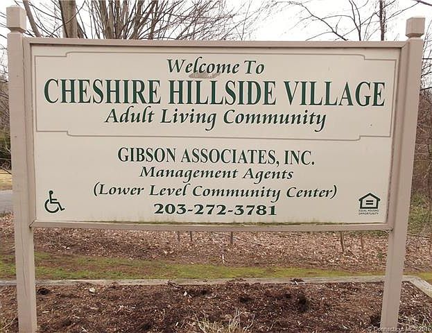 Popular Cheshire Hillside Village 62+ residency requirement! Seldom available 2 BEDROOM! Accessible complex! A community perfect for the active adult looking for easy care living! 5-rooms includes 2-Bedrooms, Large open combination living room/dining area and galley style U-shaped, fully applianced kitchen, full bath, and a front entry room w/chair rail molding detailing. This "extra" living space front room is an ideal breakfast area, computer room, den, mud room, sitting/reading area. Unit has been completely repainted for a move-in opportunity. This is a corner condo end unit! Drive up/drop off access. Slider to covered deck and enclosed storage shed area. Central location is within walking distance to nearby banks, post office, senior center, churches, shopping complex, in-store & drive through pharmacy, and other misc. services, plus food, food shopping, bus line access and more! HOA fee includes heat & hot water. Unit offers wall sleeves for individual AC unit. Full size newer stack washer and dryer laundry, these appliances are conveniently located within the unit. No need to go elsewhere! Full bath w/combination tub/shower, plus elevated toilet, grab bars/emergency pull cord. Unit was completely carpeted April, 2016. Good closet space with lighting and a hall linen closet. Covered deck and exterior enclosed storage area. Owner of record need not be 62!