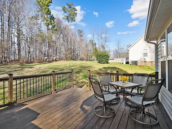 Well maintained home in a forested Youngsville neighborhood with no HOA. 3 bed/2ba home with a well laid out floorplan and lots of extras on a large lot. New granite in the kitchen, new roof (2020), and new water heater. New flooring/carpet throughout. New deck with outside kitchen and lighting. Storage shed conveys acceptable offer. You may see deer wander through your large yard and enjoy the birds/wildlife, yet close to downtown Youngsville. Welcome home!