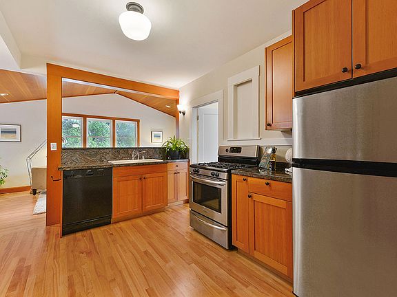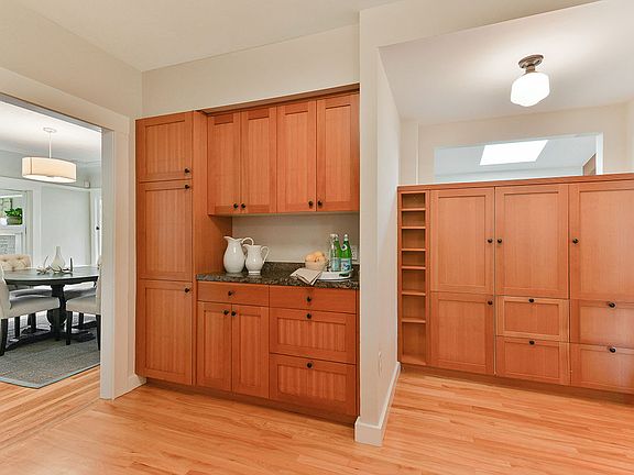 SIMPLY IRRESISTIBLE This custom home builder’s 1912 Craftsman home is anything but typical! Framed in first-growth redwood, it’s clear this beautiful residence was built to last. With lovely architectural details and materials with a historic provenance, it is a handsome home with an individual spin. Set level-in at the crest of Elwood Avenue, it has a classic and striking street presence, enhanced by the contemporary landscaping of wisteria, camellia, fountain grass and sage. The welcoming porch, wide glass door and tapered columns show its personality right away. Inside, the living room has simple stained glass windows and built-in shelving on either side of the brick fireplace; coved plaster ceilings, wainscoting and beautiful glass pocket doors to the dining room are fantastic Craftsman statements. The front bedroom has lots of light, and there's a full bath off the other upstairs bedroom. The dining room features a built-in buffet and other period details, and has a graceful flow into the kitchen, breakfast room and family room. This area is the heart of the home: beechwood floors, winsome wood cabinetry and a cathedral ceiling clad with old growth Douglas Fir bring warmth to this cheery space, as granite counters and stainless appliances bring a contemporary chicness. The windows are filled with views of the giant oak in the back yard. A half-bath and laundry are conveniently adjacent to the kitchen. The landing at the top of the skylit stairs offers plenty of storage, and the hardwood floor is made of reclaimed wood from the Piedmont Avenue Bowling Alley. Downstairs is a fabulous master suite with access to the shady and sophisticated yard. The en suite bathroom is bright and roomy with a glass shower, and there's a huge closet with plenty of storage space. There's even an ingenious drawer system built into the steps to the basement. The immediate proximity to the vibrant Lakeshore/Grand Lake neighborhood means every need is close at hand: the Farmer's Market, grocery and hardware stores, the Morcom Rose Garden, in addition to the Lakeshore shopping district and some of Oakland's best restaurants. This historic area is also minutes from Lake Merritt and affords easy accessibility to San Francisco by car or public transportation. A fabulous location, strong architectural features and unique details—there's no other way to go.