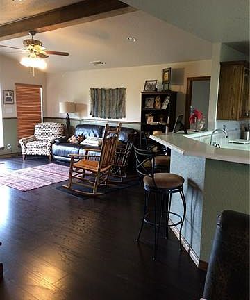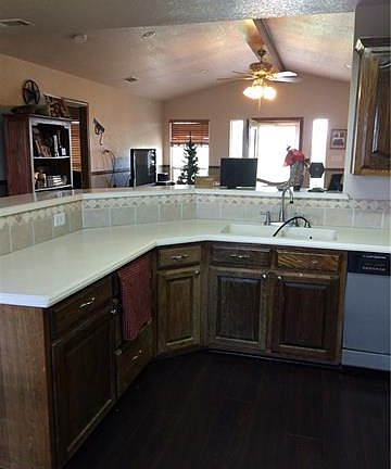 Pretty 4 bedroom brick home on 5 Acres. Open Floor plan big rooms. lots of space in kitchen with corian counters. stainless appliances fridge stays. Gorgeous wide open mountain view in back, 4th bedroom off could be 2nd living, dining, etc.beautiful darker wood laminate floors in living, dining, kitchen and halls. Ceramic in baths. also laminate in 4th bedroom room. 5 acres completely fenced with pipe gate in front. horse stall with coral.