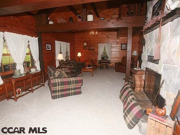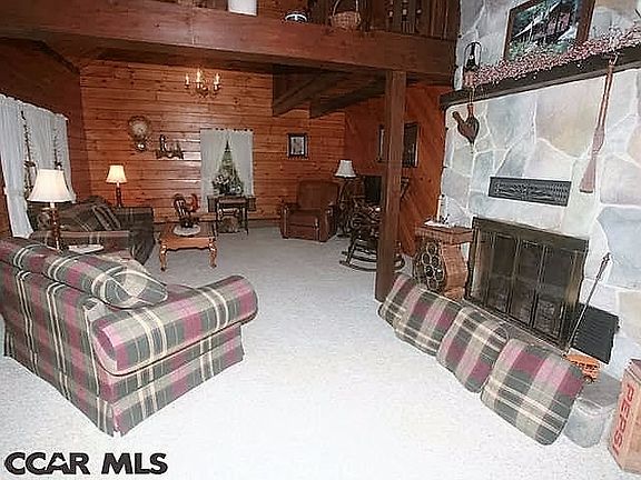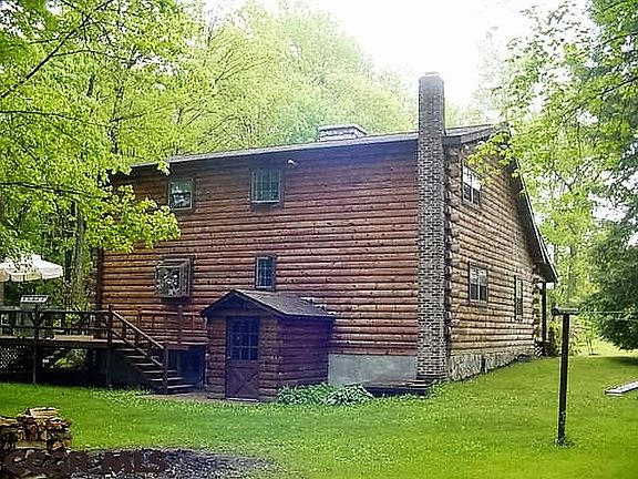 Beautiful 1 and a half story log house set on 3 acre wooded lot, 3 bedrooms, 2 bath, open concept with vaulted ceilings in living room and dining room. Eat in kitchen with oak cabinets, and wood floors. Second floor has 2 large bedrooms, 1 bath, and sitting area. Full front porch that wraps around the house with a large deck for quiet meals or entertaining family and friends. Minutes to I80 and Philipsburg, approximately 35 to 40 min to State College.