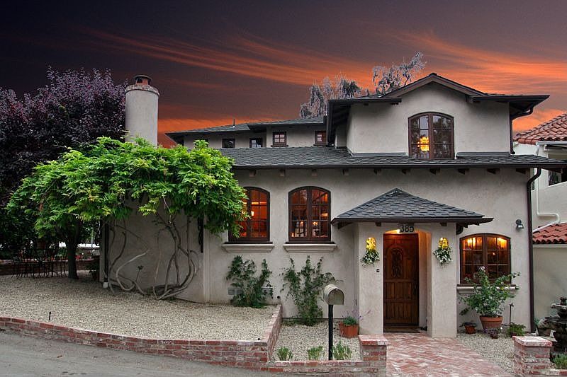 Bel Fiore, situated on a corner lot spanning Flora and Catalina, is in the heart of Woods Cove surrounded by lush greenery. Just 2 blocks to world class shopping and restaurants, and 3 blocks to the beach. This property is beautifully built from every angle with handcrafted wood finishes throughout. Brick details define the foyer with an archway leading downstairs to the guest bedroom complete with brick walls and ceiling. Vaulted ceilings and oversized french doors open the main living space to the surrounding sunlight. The wood burning fireplace tastefully carries the brick into the family room. Outdoor space on both sides of the great room and kitchen captures the ocean breeze. The kitchen features Carrera marble countertops that are continued onto the built-in desk accented by leaded glass windows. Custom cabinetry and finely appointed hardware enrich the warm tones throughout the home. The walnut wood floors are carried throughout every room. Peek at the ocean from bed in both the master and second bedroom. The master suite is complete with custom finishes from the etched glass closet doors to the window treatments and the private, connected office. A claw tub, wainscoting, and glass knobs detail the master bath. Live comfortably with central air conditioning and a Sonos system. Entertain outdoors on the wood patio glimpsing the ocean or in the backyard complete with a built-in BBQ and hidden behind mature hedges providing ample privacy.