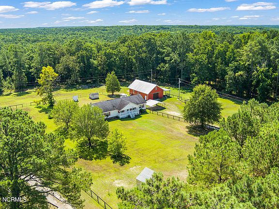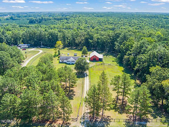 If you are looking for some quiet acreage, ideal for horses, close to Fort Bragg, Southern Pines, Pinehurst, and within an hour of Raleigh, this 6.98-acre Mini Horse Farm in Moore County could be the ideal place for you! NO HOA and listed well below recently appraised value! The listing pictures are not deceiving you; this place is beautiful! This farm hosts a single level 3 BR/ 2 Bathroom modular home with a lovely covered front porch to take the gorgeous views. Additional features include a large (30x50) barn with plenty of room for horses and/or equipment and a lean two shed (14X50). The front and back yard is fenced, separate from the barn areas, which are also fenced.