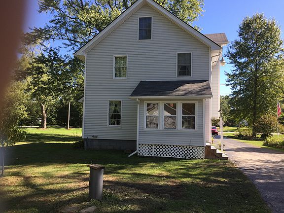The perfect blend of old and new, this three bedroom farmhouse style home has many updates. The eat-in kitchen and bath have both been updated, the roof is 5 years old, the well is three years old, the electric is updated to 100 amp and the windows are newer. The original woodwork has been refinished and it is beautiful. Walk-in closet in main bedroom and a walkup attic that could be finished for another room. Lovely front porch, enclosed back porch, vinyl siding, large park-like lot, a two car detached garage, another one car garage and also a greenhouse.