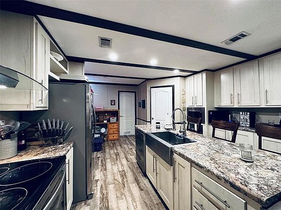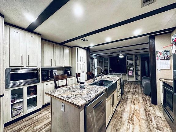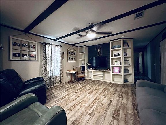 If you are looking for peace in a rural setting then this is the home for you! This is a 2019 single wide home with three bedrooms and two bathrooms on one acre. This was a custom home with a farmhouse theme throughout, built-ins everywhere, large kitchen with farmhouse sink, dark features throughout, barn doors, garden tub, barn doors, and lots of lighting throughout. You will love the front and back porch to soak in the quiet around you. There is a shed on skids and metal double carport that will remain with the home.