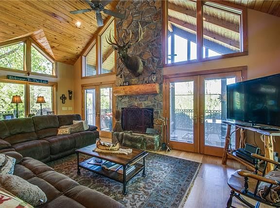 Stunning, upscale home loaded! Classy, custom detail! Nestled in nature, true RETREAT boasts luxury appts, carefree living; generous living spaces, comfortable porches & fireplaces. Unique architecture allows star gazing from any room! Ultimate living!