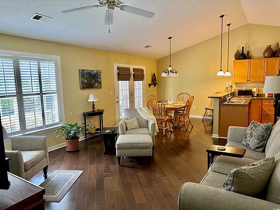This charming home is located in one of the most desirable areas of Myrtle Beach just minutes from the Market Common District with many shops, restaurants, spacious ponds, playgrounds, a bowling alley, a movie theater and much more! It is also just minutes from the Coastal Grand Mall and the beach. It is located on a spacious lot that backs up to a pond divided by a peninsula with views of the pond, mature trees and shrubs. It features 3 bedrooms, 2 full baths and a great screened in porch! It is an open floor plan with engineered hardwood flooring in the main living areas to include the kitchen, hallway and foyer, vaulted ceilings in the great room and primary bedroom. The primary bath has a walk-in shower. It also has a whole yard irrigation system. Make an appointment to see this home and make it yours! SQUARE FOOTAGE IS APPROXIMATE AND NOT GUARANTEED. BUYER IS RESPONSIBLE FOR VERIFICATION OF SQUARE FOOTAGE.