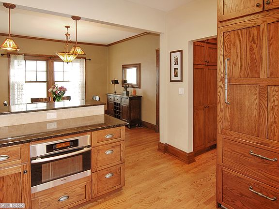 Loaded with charm, this spacious updated 5 bedroom, 2 bath Queen Anne has been beautifully restored with a gourmet kitchen, featuring Miele, Wolf and Subzero Appliances, custom Oak cabinetry breakfast bar, and granite counter tops. The formal living room has a wood burning fireplace, oak crown molding and enters to the fabulous screened in porch. The open floor plan includes a large dining room adjacent to the kitchen providing wonderful entertaining space. Two of the bedrooms are on the main level, one currently being used as an office. The two full bathrooms have been fully updated. The family room/den looks out to the expansive yard and patio. The master bedroom and two additional bedrooms occupy the second floor. A nicely finished rec room in the basement offers additional living space. The unfinished portion of the basement provides plenty of room for storage. The front yard was newly landscaped in 2014 and the home is situated on a quiet tree lined street in walking distance to the Metra train station (only 11 miles to the Chicago Loop), award winning Riverside schools, and the historic downtown.