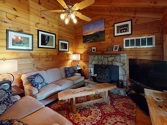 Incredible mountain view 2 bedroom, 2 bath log cabin with BONUS ROOM! All wood interior gives you the full cabin feel. Great location near town with high speed internet available. Includes updated kitchen, and bathroom vanities, metal roof, wood-burning fireplace, handicap access and workshop! Sit on your porch and enjoy the view of the USFS and could be a 180 degree view with minor tree clearing. This would make a great rental or full time living here in the mountains. 3D virtual tour available and a must see!