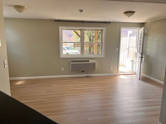 Studio available! Come home to a cozy yet spacious home! Ideal for one person. Living room/bedroom, large kitchen, bathroom and in-unit laundry, with washer and dryer provided. Recently remodeled with like-new kitchen cabinets and flooring, recessed lighting, ceiling fan, and fresh paint throughout unit. Beautiful large yard with private outdoor patio. Covered, off-street parking. Unit in a triplex, downstairs with private walk-out; all in a quiet neighborhood in Clyde, conveniently located less than five minutes to downtown Canton and shopping, and convenient to Asheville, Waynesville, and Lake Junaluska. $900 per month. No pets. Utilities separate. Additional storage space available in a clean, shared shed on property. Monthly Rent = $900. Security Dep. = $900 Utilities Separate. No pets. 1 year lease to start, and can renew.