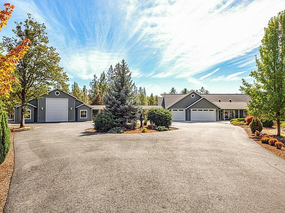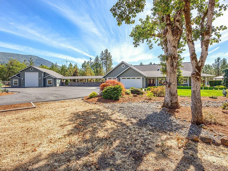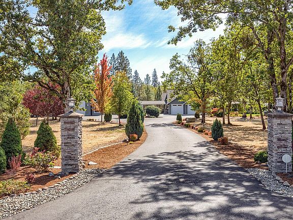 Welcome to the good life~ this tranquil setting just outside the city of Grants Pass is a well thought out paradise of beautiful, luxury homes on smaller parcels of land. Approx. 2 to 3 acres each.... just the perfect size! Offering an oasis of rural quiet and privacy with the convenience of a fast commute to G.P. and easy access to I-5 for those longer vacation trips. The minute you drive up to the stately entry you'll notice a well thought out single level Home with 3 car garage, Lg. R.V. barn w/ hook-ups, attached offices and shop complete with covered walkway to and from the main house. An inviting outdoor kitchen, gazebo, greenhouse and more complete the outside. Inside ~the open floor plan offers a feeling of spaciousness and function... couple with wonderful views of the nature that surrounds you. Tastefully decorated by an interior designer you'll enjoy all the details that make this property one of a kind. Truly special! View today, it won't last long!