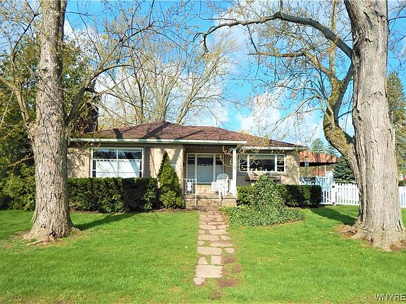 A great location in the village, less than .5 miles, 3 blocks walking distance, to The Niagara River, Center St. and Kiwanis Park & approx. 1 mile to Artpark. This corner lot, Ranch style home, features 3 bedrooms & 2 Full, spacious, baths. The finished, dry basement, with WB fireplace, houses 2nd full bath, providing much more versatile living space. A lovely, updated Kitchen, with granite counter tops, breakfast nook, plenty of storage plus a large, picture window, for natural lighting, leads to a cozy dining room & spacious living rm with gas fireplace. There is hardwood Throughout the main floor, under Removable carpet. The kitchen & baths are tiled in neutral colors, ready for you to add your cosmetic touches. This home has unique curbside Charm and Style. The exterior has a covered front porch & a removable awning covered, side deck, for enjoyment of views from all sides. The side & rear yards are fenced. The solid, 2 car, block garage, is spacious and dry. The house roof is less than 10 years old.