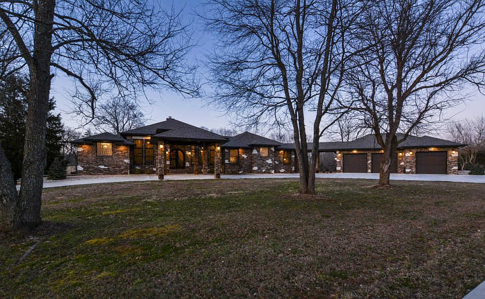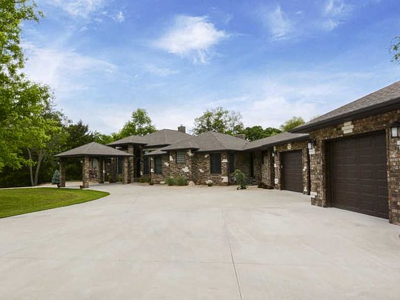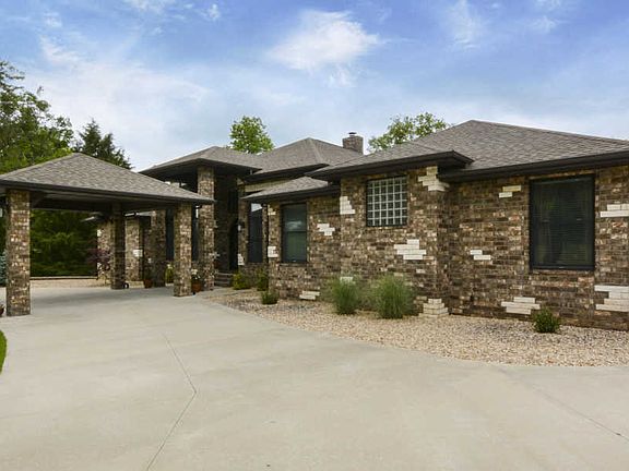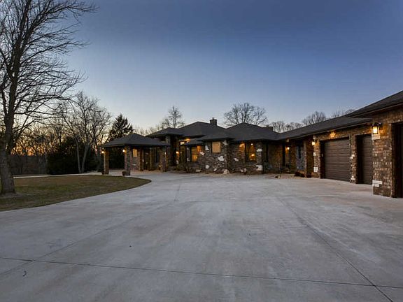 This 36-acre Missouri Bluff home is nestled alongside the Finley River for nearly a quarter mile in scenic Ozark, Missouri. Minutes from South Springfield and thirty minutes from the entertainment capital of the world, Branson. Enjoy private, peaceful, luxury living, with the long private drive that meanders through the park-like setting, the home & shop are nestled within walking distance of the river. The property offers a great combination of Sycamores, Walnut trees, open pasture, and outdoor living area opportunities. The quality exterior offers a 4'' all brick home, covered parking, a covered porch with custom designed imported iron front door, a huge covered back patio with a full masonry 2 way pass through wood fireplace with gas line, Anderson low E gas windows, wired for whole house generator, 2x6 exterior studs, Zip System wall & roof sheathing, zoned HVAC with Honeywell WIFI, Cat 5 wiring. Inside, the one level home has a great flow, excellent finishes, and manageable square footage. Additionally, the interior hosts 14' entry ceilings, crown molding, 8' interior doors, all tile flooring, heavy trim, an office with granite & built-ins, a formal dining room, a hearth with coffee bar & 2 way fireplace, media with built-ins, a huge dedicated laundry with storage and has granite & stainless sink, and a jack-n-jill full bath with granite that serves bedrooms 2 & 3. The kitchen is open, easy, and loaded with custom soft close cabinets (uppers have rain drop glass) & granite. It also provides a huge island & breakfast bar, Electrolux cooktop with commercial grade hood, a convection wall oven, microwave, dishwasher, trash compactor, and topped off with a deep stainless sink, and walk-in pantry. The master suite offers 8-foot doors, an exterior exit to covered patio, raised & split granite vanities, a sitting area, champagne white air jacuzzi tub, walk-in shower with body sprays & rain heads, 2 walk-in closets with built-ins, complete with privacy.