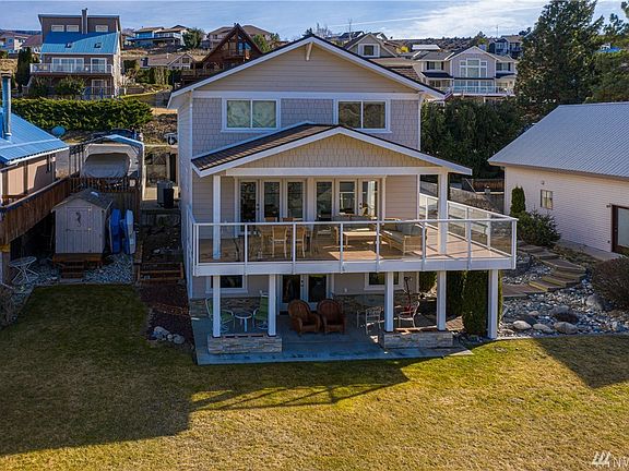 Rare Waterfront Opportunity in Lake Entiat Estates! Fun for all in this 5 bed 3 1/4 bath home. Extensive Remodel completed in 2014. The main level boasts an open floor plan with a luxurious Kitchen and family room leading to a large covered deck. 4 bedrooms upstairs with 2- ¾ baths. A large rec- room downstairs and additional bedroom and bath. Just steps to your private moorage buoy and sandy beach. Sun Cove amenities include a clubhouse, large community pool, three marinas and a boat launch.