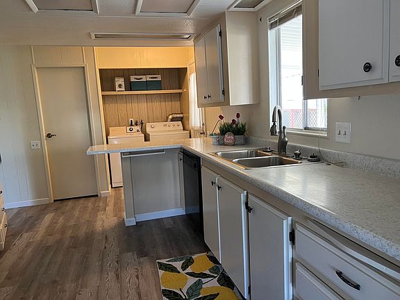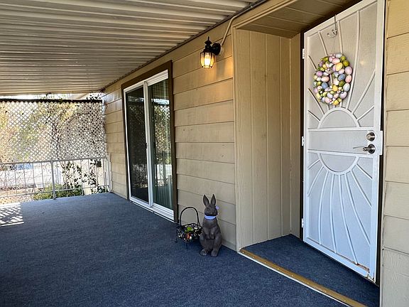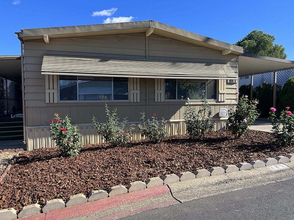 Mobile home in the Redwoods Senior Park. Great location-corner. 2 bedroom, 2 Bath 1440 square feet. Additional spacious living area, could be converted to private room with sliding door to front porch. New front porch deck and New vinyl floors throughout. Lengthy carport with easy access to kitchen. Priced to sell. Park approval required by Park manager. Space rent $650 includes water sewer and trash.