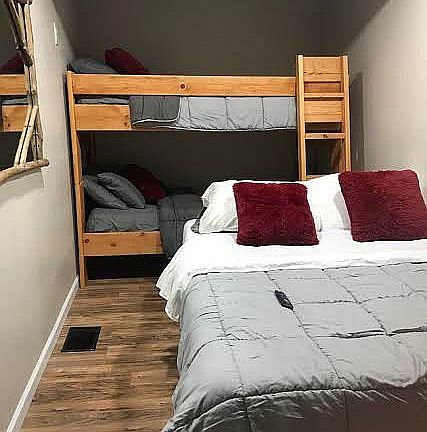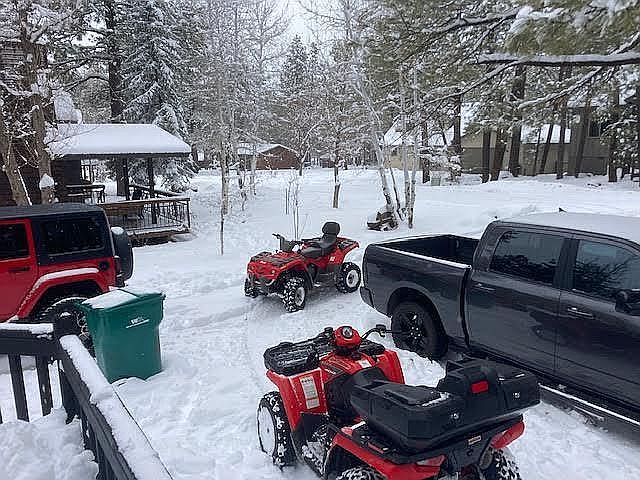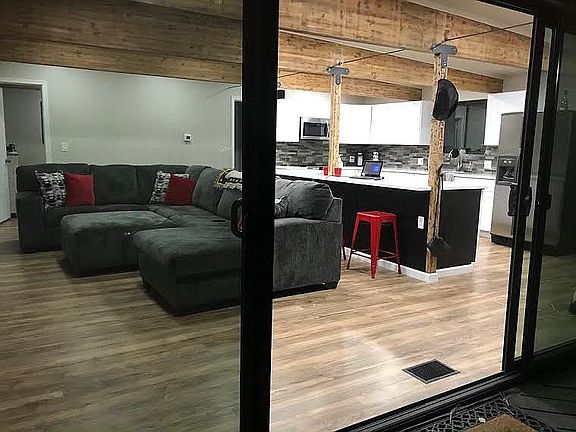 This is it; your perfect cabin in the woods. Fully remodeled with all new windows, doors, flooring, kitchen cabinets, countertops, appliances, a second bathroom and 3rd bedroom, on-demand water heater, and a new Train A/C and heat unit with all new duct work. The first bathroom has been completely remodeled with a stone inlay shower, glass doors, new toilet, and vanity, and a second full bath, shower and tub has been added. New washer and dryer also. The lot is a mix of open grassy areas and soaring ponderosa pines. Relax and soak up the cool summer breezes on the over-sized deck with smoker, charcoal, gas grill, flat top griddle, and a propane fire pit. Comes with a storage container garage where we store two ATV's, kayaks, tools and much more. Located on a quiet street. Comes completely furnished. Affordable and move in ready. (Largest bedroom and one bath not pictured)